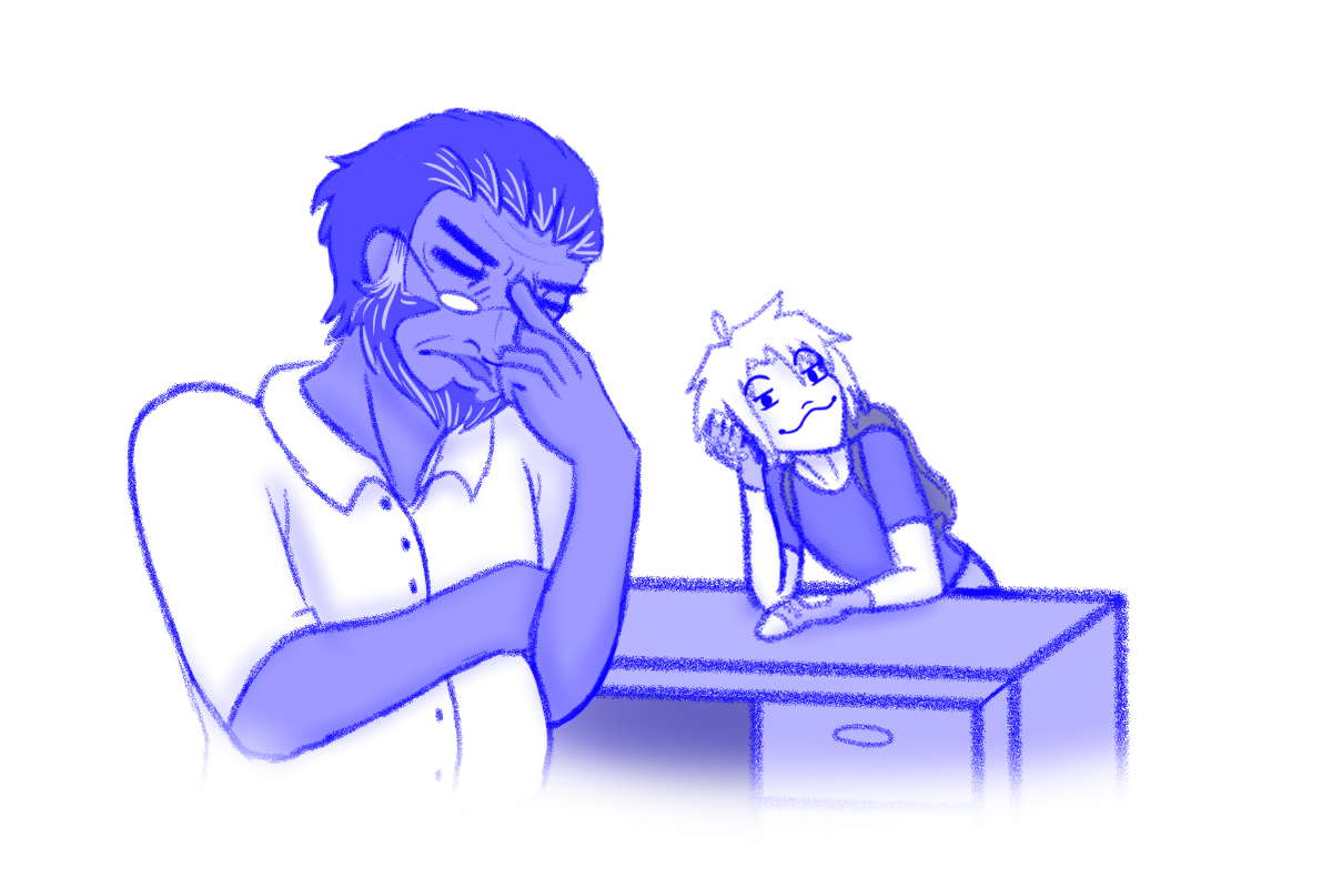 “I… well that was bad leftovers, I learned my lesson there,” I said as-a-matter-of-fact-ly as I laid my stuff out. “Besides, lord knows I’d be missing out on your frankly…” I paused for a moment as I glanced down at the notes and doodles on her desk. “... interesting way of making presentations for this class.”