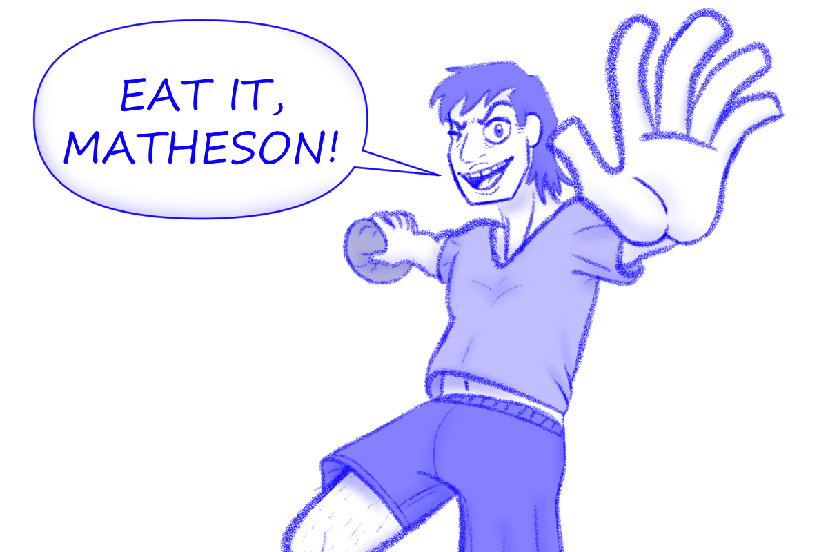The one time I tried throwing a dodgeball at someone, my main target ended up jumping out of the way. My throw cork screwed straight towards Uma, and to my horror, she caught it one handed.