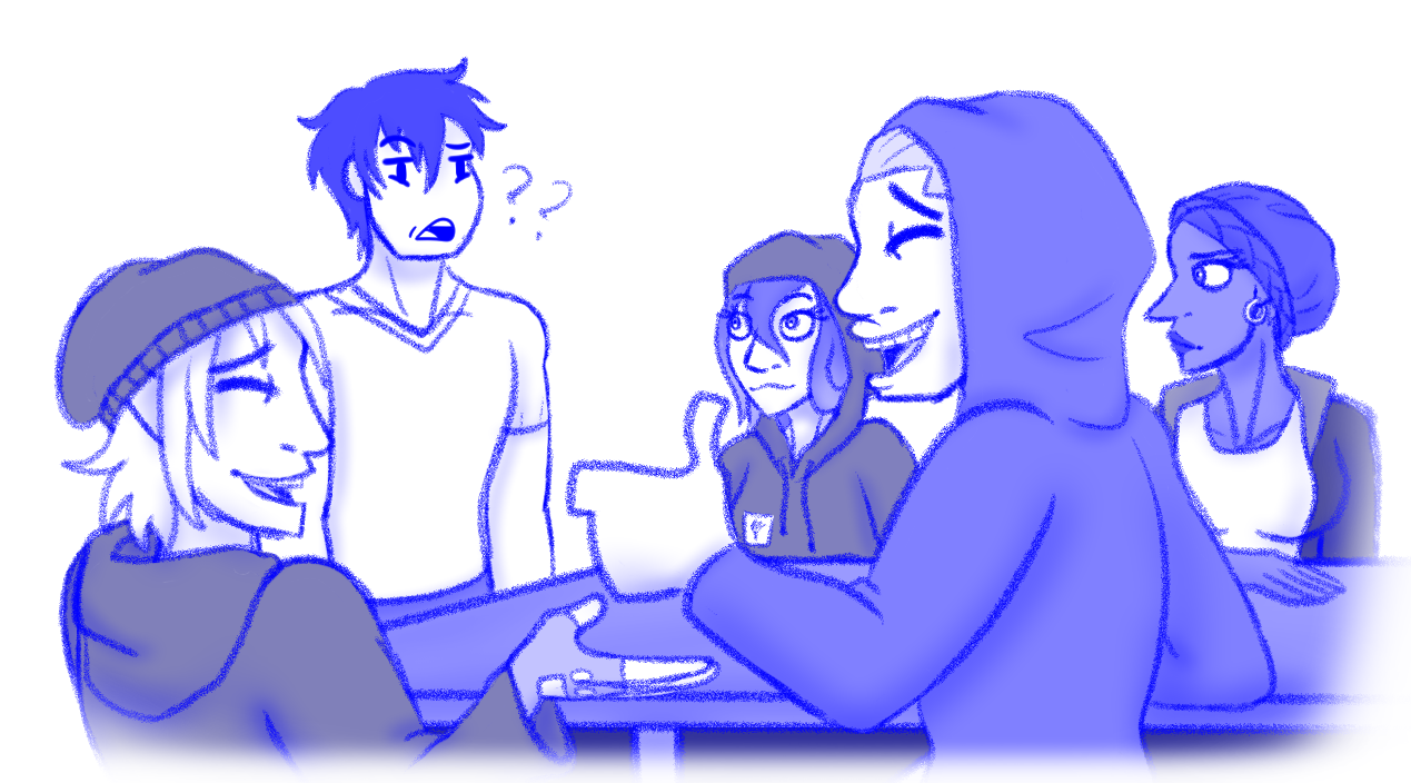 “Hey! Only I get to call him a beanpole!” shouted the shortest of the three, getting up close to Mike to try and be intimidating. Considering Mike had at least a foot on him, he was trying to stand on his tiptoes in order to do so. “Besides, it’s literally just following the instructions in the book, any second rate STEM kid could do it, knucklehead!”
