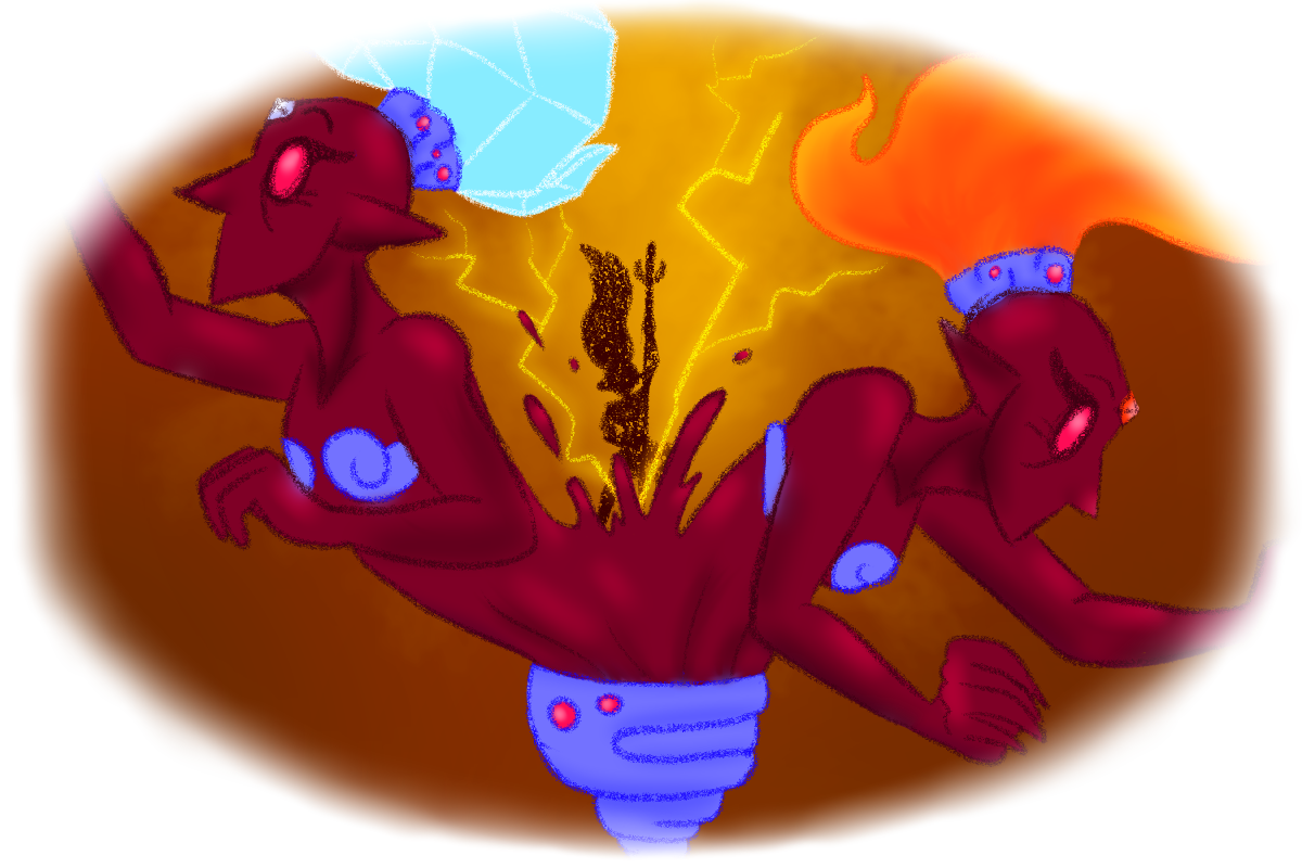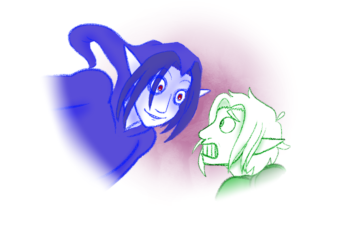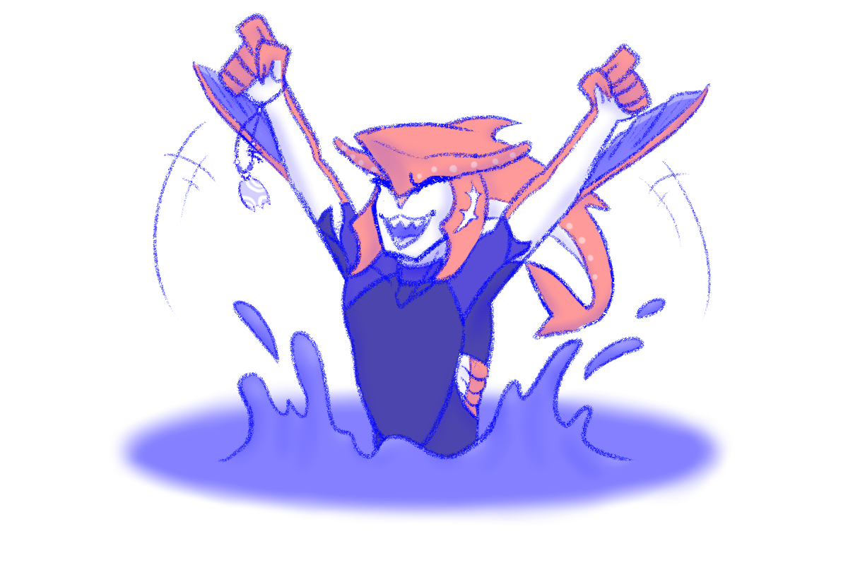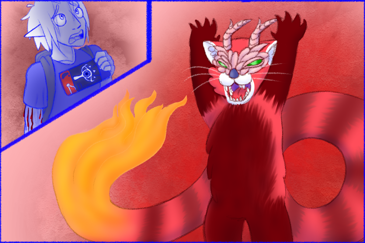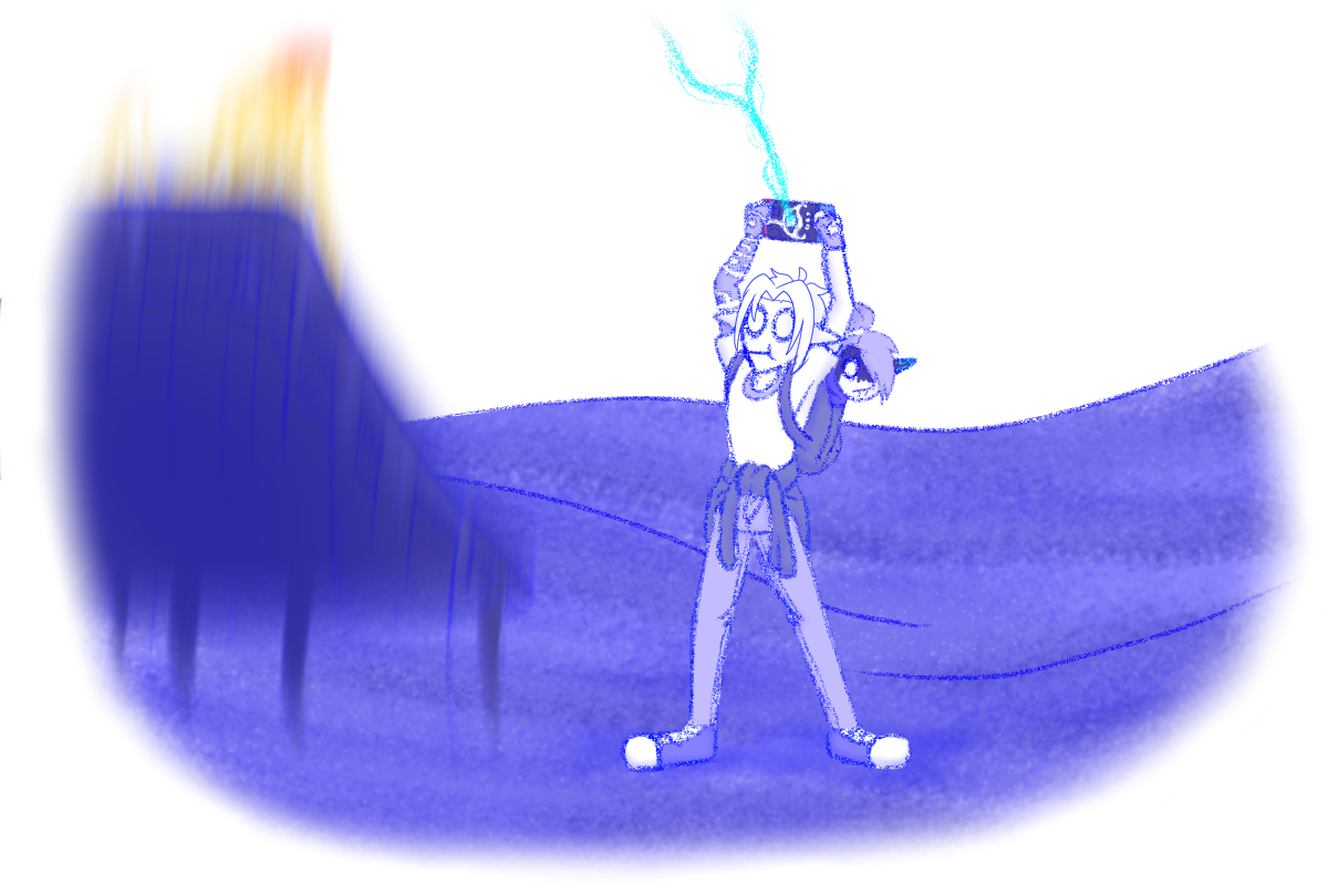 On Uma’s command, a bolt of lightning shot down from the sky, weaving through the leaves and not touching any of them before it came down right on top of the hollow’s oil-slick head. A crash of lighting, the jittering sounds of electrical shock, and the unmistakable fwoosh of fire as the oil all over the creature was set alight. Uma couldn’t help but triumphantly laugh as they continued to run away.