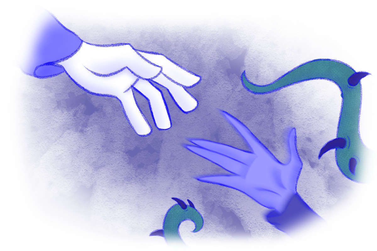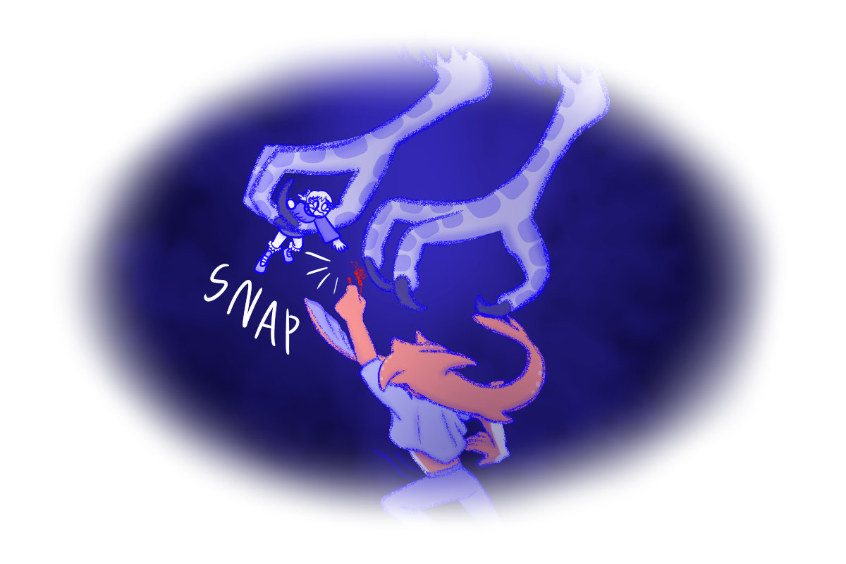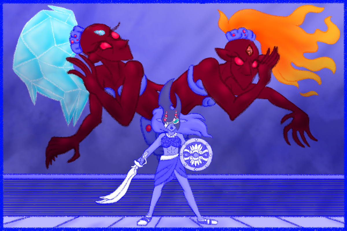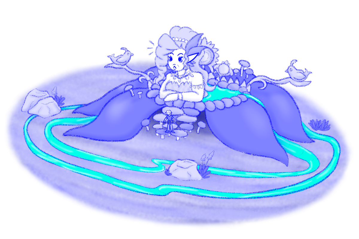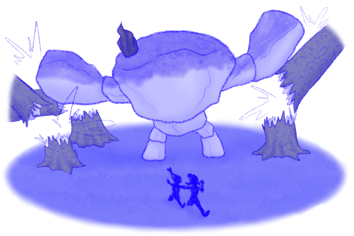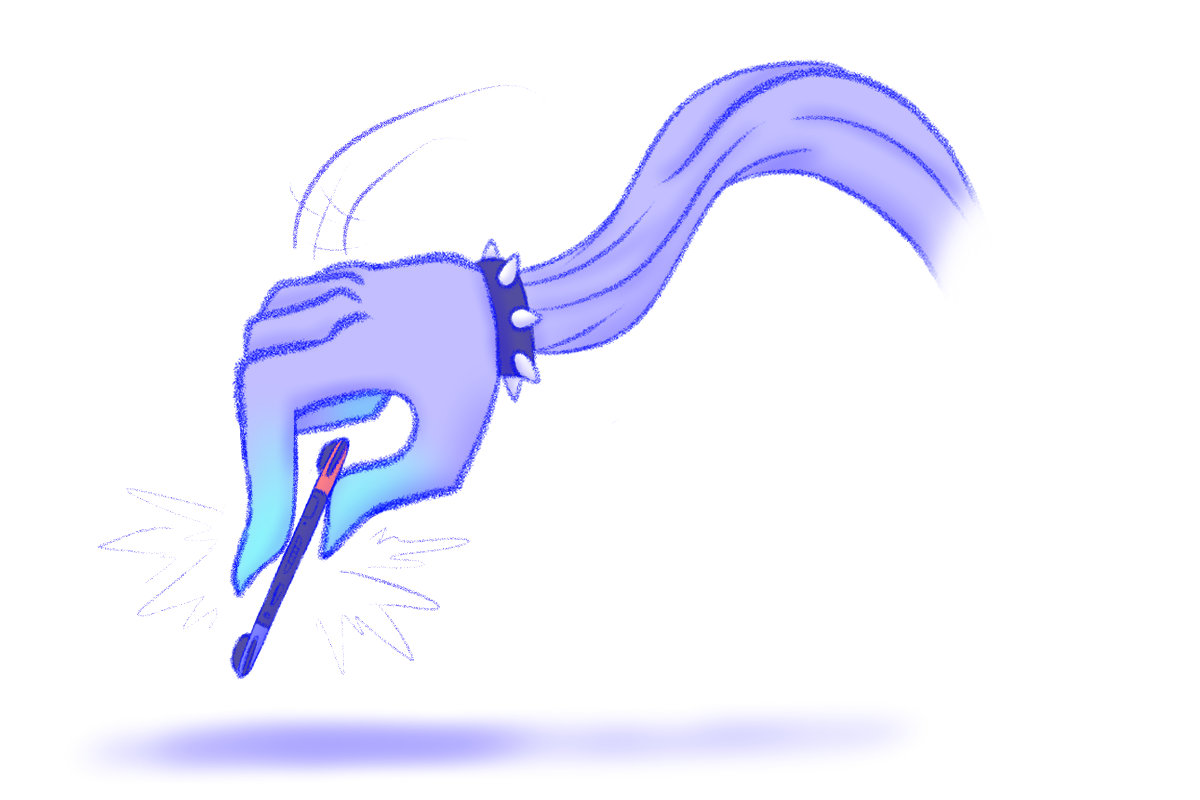 On Uma’s command, a bolt of lightning shot down from the sky, weaving through the leaves and not touching any of them before it came down right on top of the hollow’s oil-slick head. A crash of lighting, the jittering sounds of electrical shock, and the unmistakable fwoosh of fire as the oil all over the creature was set alight. Uma couldn’t help but triumphantly laugh as they continued to run away.