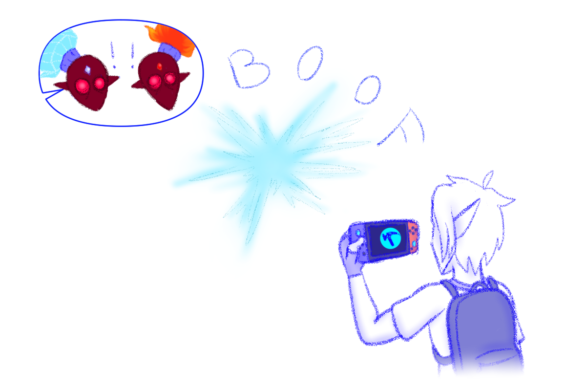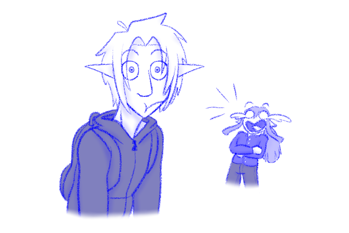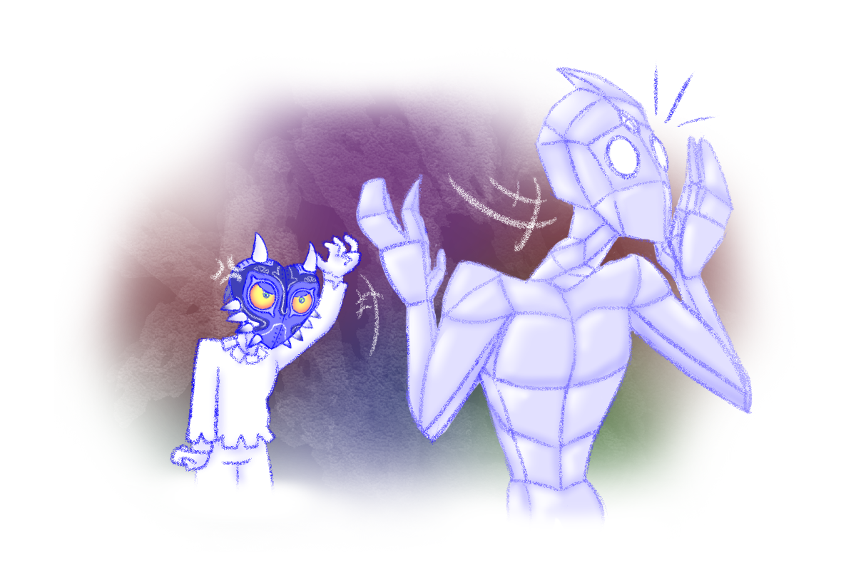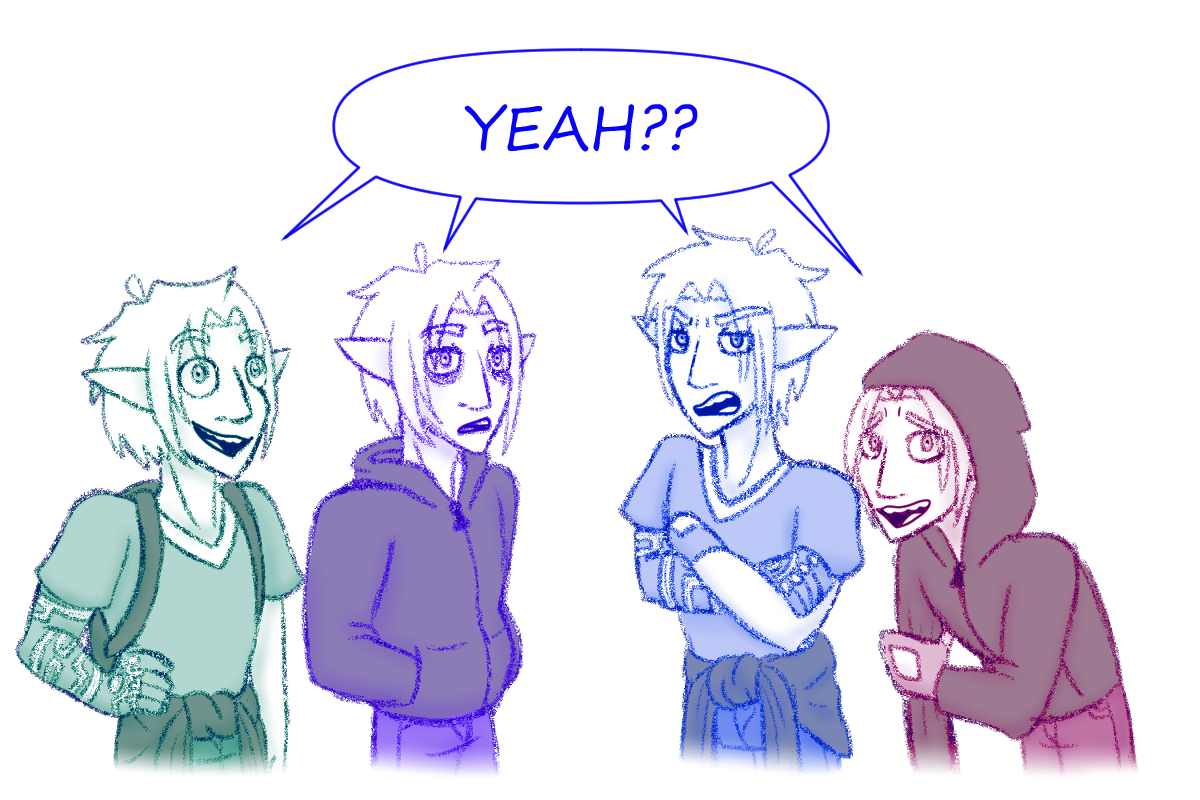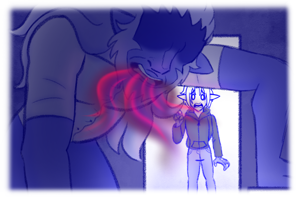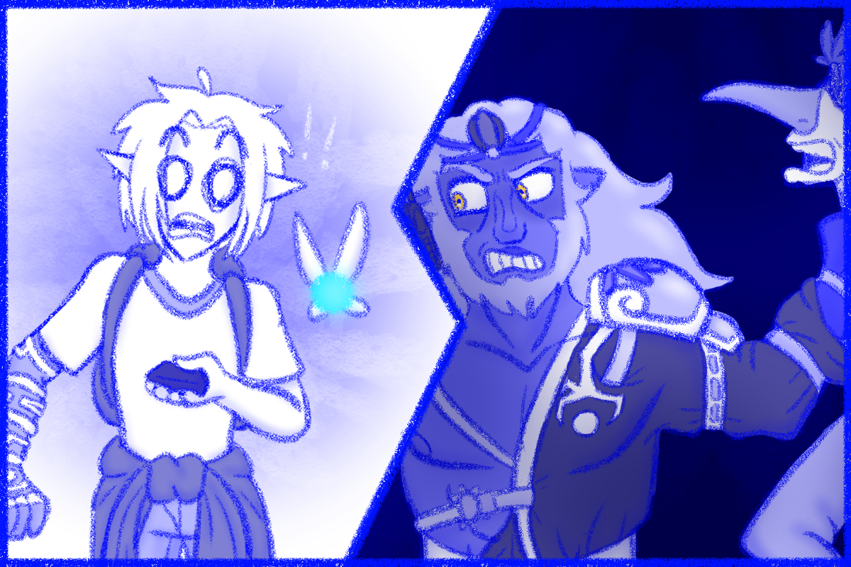 “Guys STOP!” She shouted it loud enough for them all to immediately skid to a stop. For a brief and fearful moment, they wondered what Navi had spotted that was so startling. More monsters? Bigger monsters? Miranda couldn’t help but fear that the big moblin they saw in the school quad was back, but as the shadow slinked around to get a better look at the sight in front of them, she didn’t feel fear. It was fear… and annoyance.