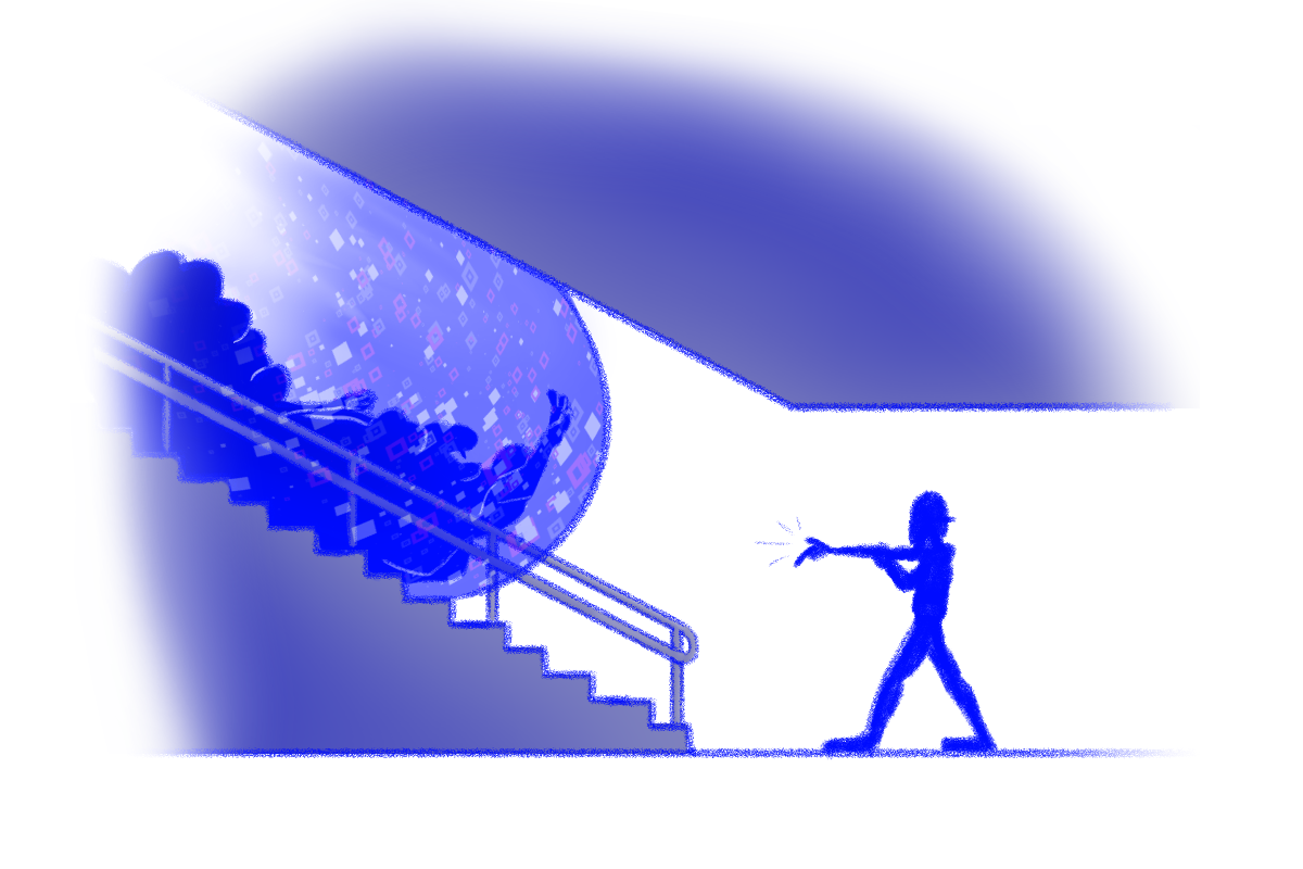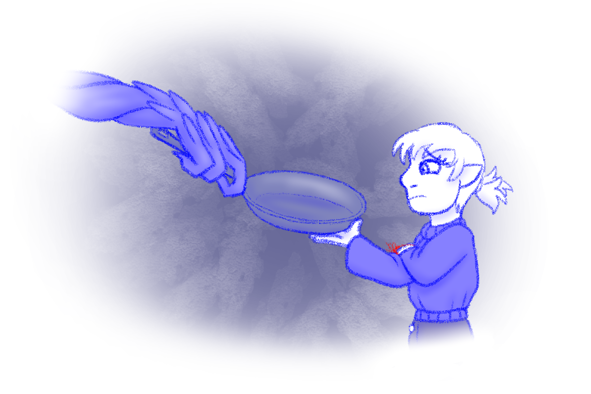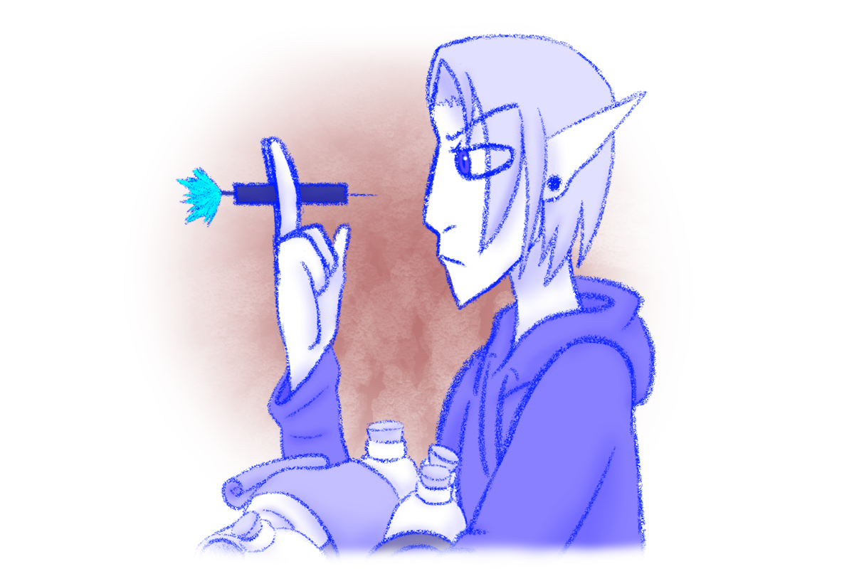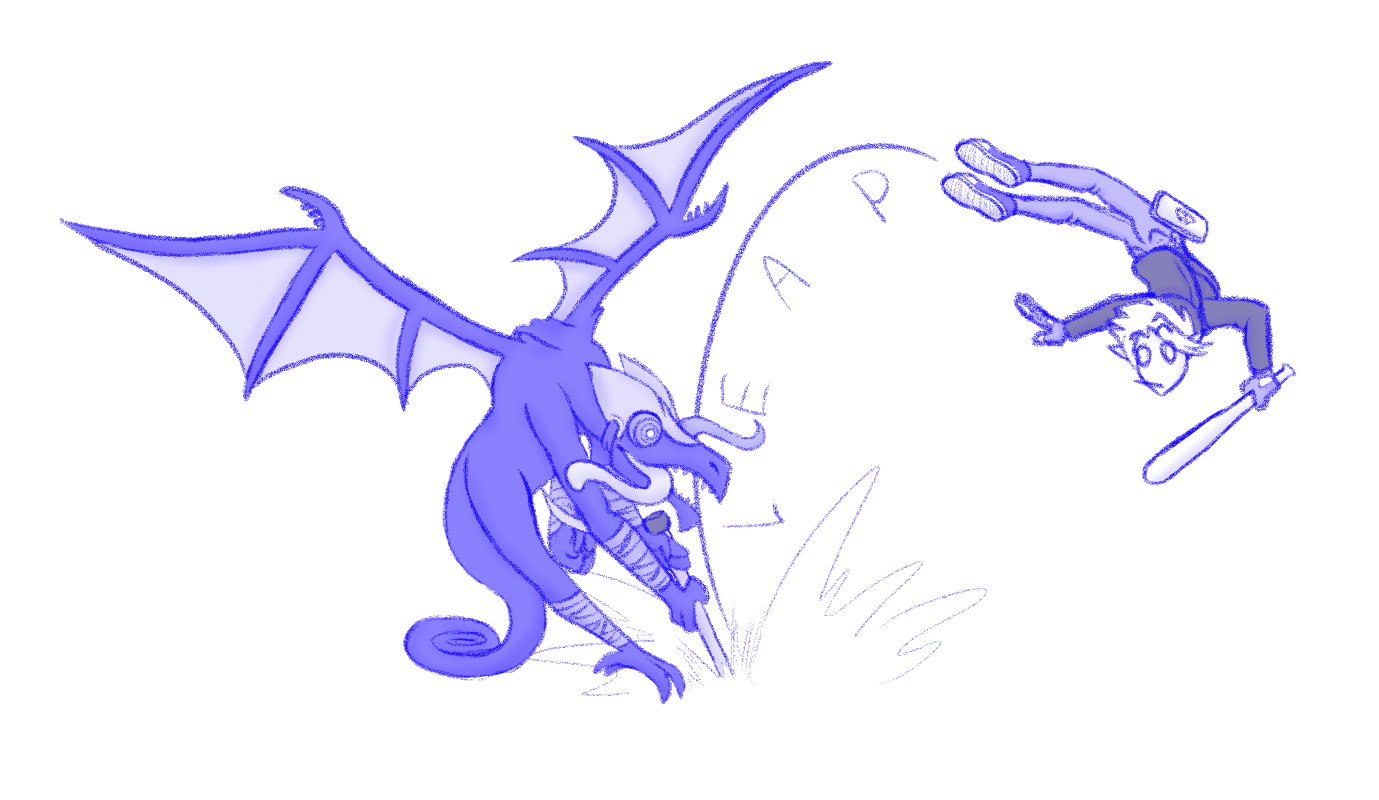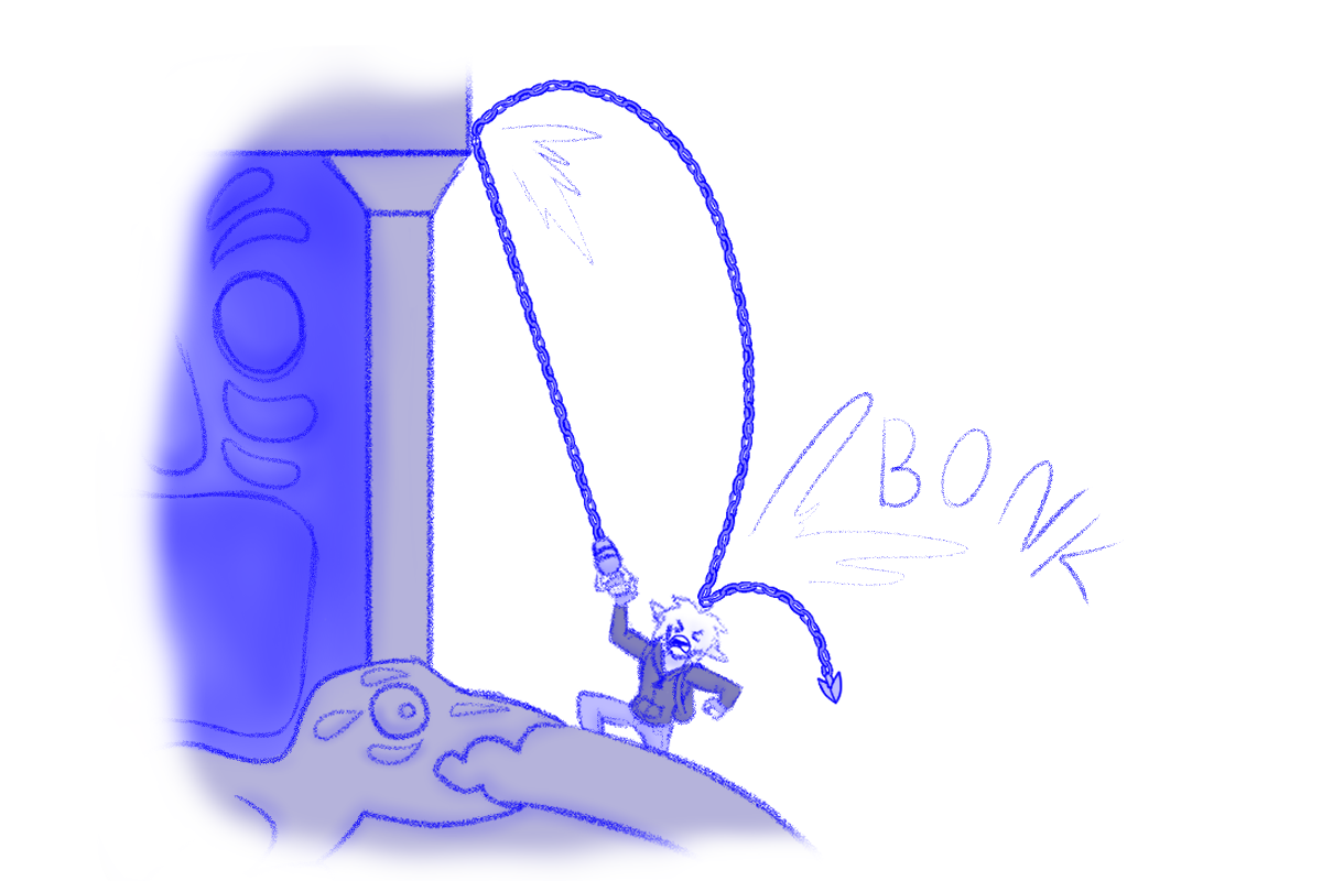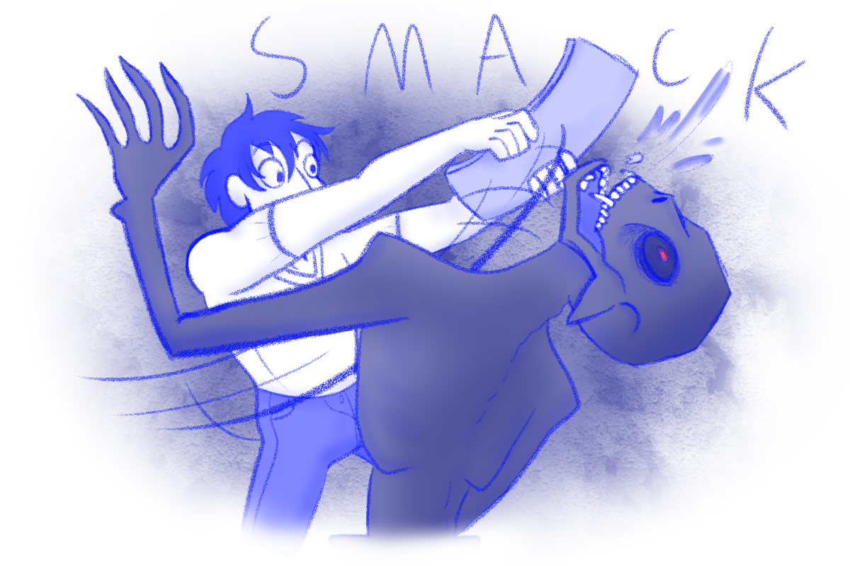 “Shoot, it’s gonna be like this, huh?” I slid the left joycon off of the slate, putting the rest of it back on my belt before turning right back around. A few clicks of the d-pad, and suddenly I was blocking a strike from the hollow’s blade-like hand with a metal chair leg. It was sudden, and it caught me off guard a bit, but I was soon able to catch it off guard right back. I pushed back against its blade and knocked it back a bit before swinging the chair leg, slicing across its face.