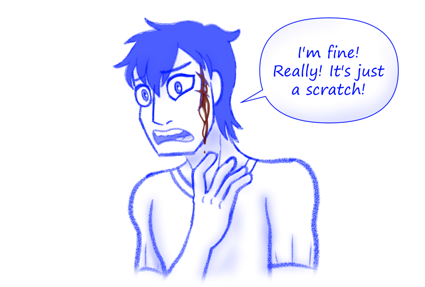 “Yep, I’m fine. Nose is just bleeding is all, it’s fine,” I assured her as she handed me a tissue from her bag. I held it up to my nose. “It ain’t my first one. Should stop before my first class.”