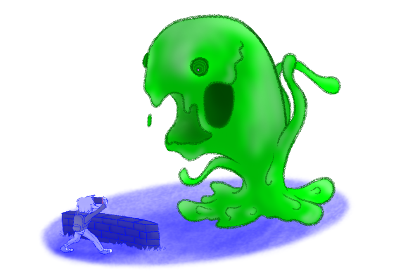 Mike had figured out a plan of action against the malice creature running after them in the woods. It wasn’t the most sophisticated one, but it should at least buy them enough time to run off somewhere and hide from it. That plan involved him pulling his slingshot back out and loading it up with water balloons. 3 in rapid succession. One burst open against its chest. Another at the right shoulder(the one with the sword arm). The last broke open against its head. All three had been full of olive oil.
