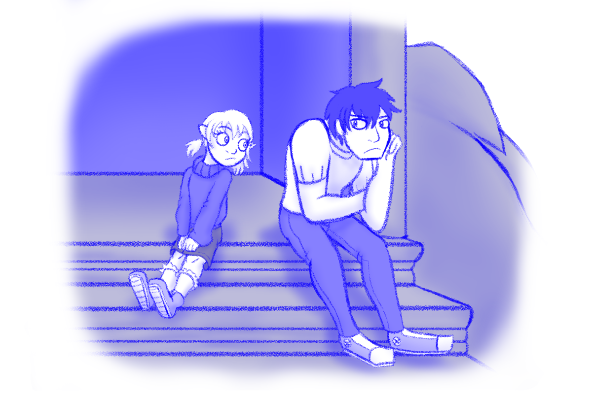 Zelda looked like she was going to open her mouth to retort, but paused for a moment, glanced down at me with her expression unchanged, then closed her mouth. Very suddenly the bus came to a stop. I hadn’t had the thought at the time to pay attention to the break lights and was unprepared for it. I suddenly lurched forward and smacked my face on the back of the bus as my feet were almost swept out from under me as my skateboard tried to glide under the vehicle with its momentum.