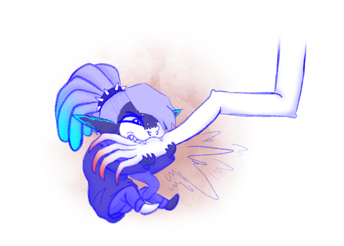 “I won’t!” Simon assured her. Oh how cruel those words would be. In the next moment, a noise could be heard. The noise of Simon's shirt ripping in the back as the one talon still holding onto him tore right through. The one thing keeping Simon aloft? Gone.