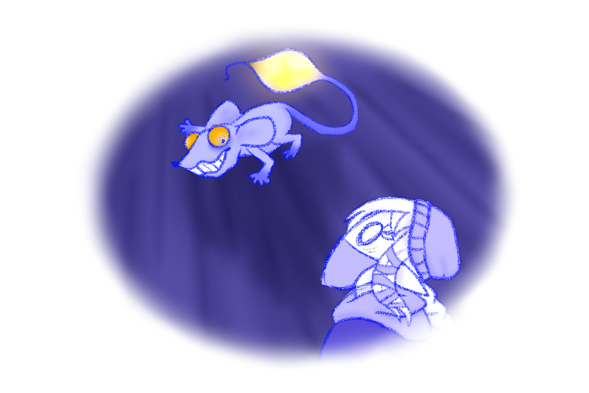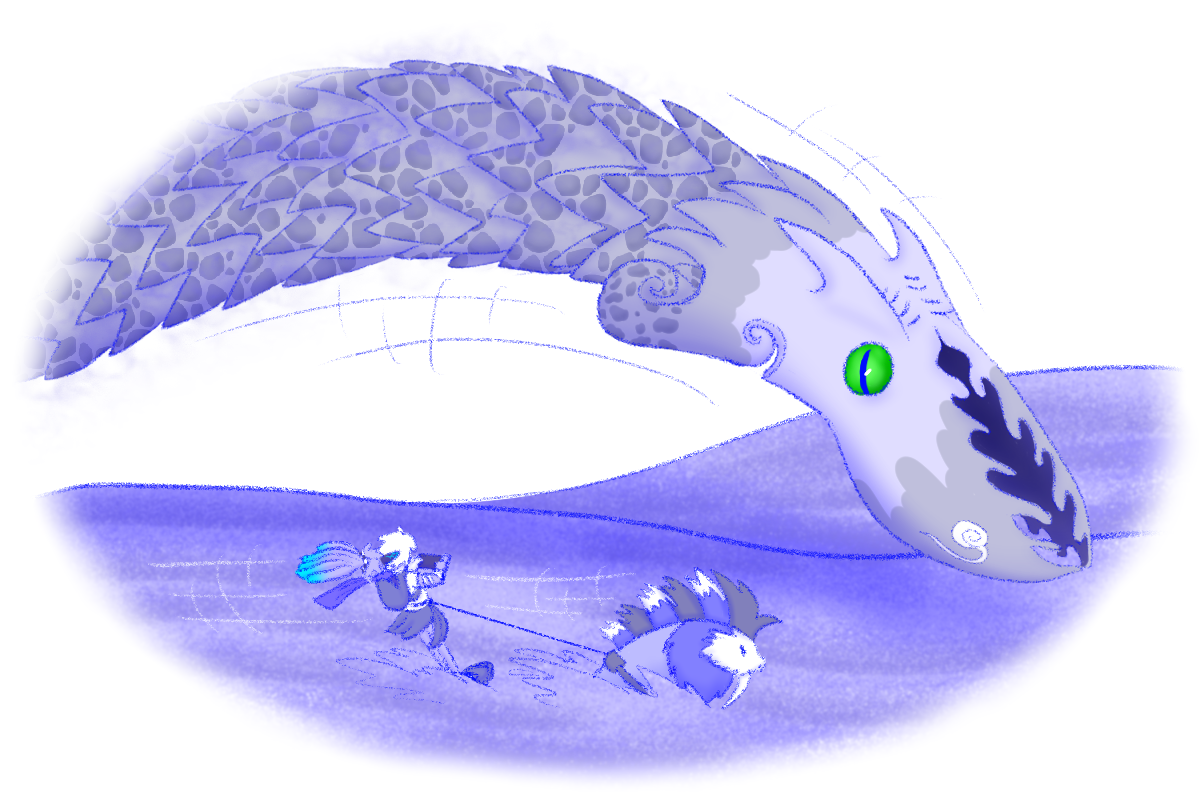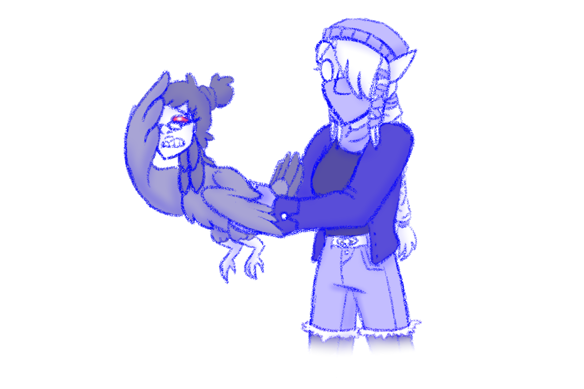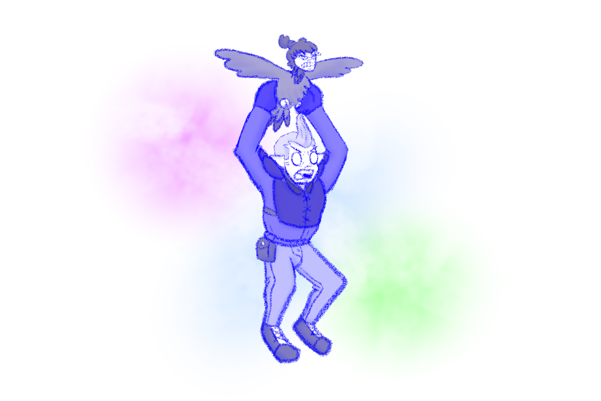 Suddenly, they were caught. The two cried out in alarm as a pair of taloned feet clasped around them. Simon’s feet were lifted off the ground, and he felt even more fear as Ariel was pulled right off of his head. They were both confused, caught off guard, startled, all at once and in rapid succession. Simon couldn’t even tell what had picked them up. A bird of some kind, and a big one at that! Simon’s thoughts were going a mile a minute, and Ariel’s panic in the bird’s other foot only helped his resolve.