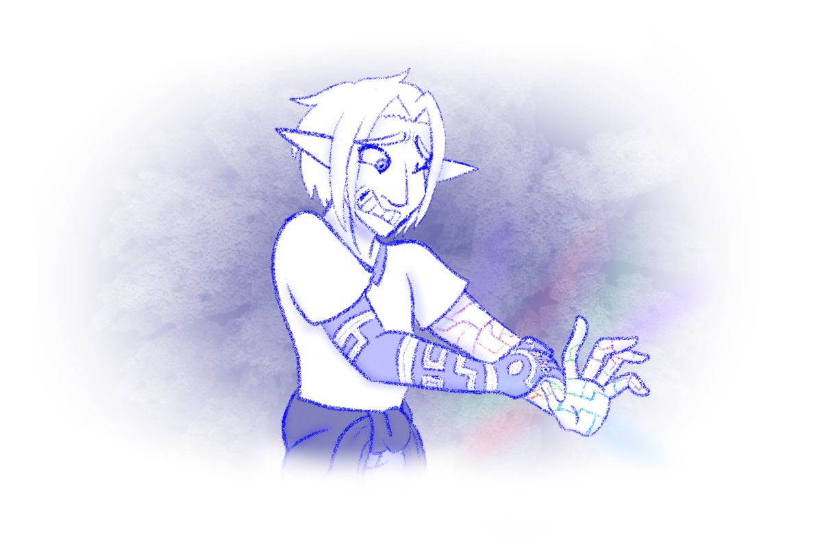 The arrow exploded underneath them, sending the ground up from under them. A blast of dirt and grass went up with the two Hylians as they were sent hurtling in the air. The hollow didn’t mean to merely knock them off balance, though. After all, Link’s outstretched arm was close enough to the initial blast that the malice was able to easily catch itself on his magical limb, seeping into the wires and veins in his skin. It all happened so fast that Link didn’t even have time to react. Not before the malice in his arm seeped in so deep that it burned, only to make the whole limb throb with numbness. Not before they fell back and went tumbling down a hillside in front of them.