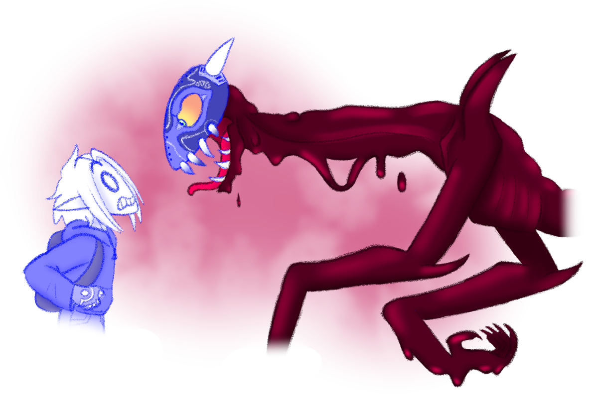 The malice laden creature sneered, although without a mouth one could only tell by how its eyes squinted in such a specific way. It’s one remaining arm jittered and melted, becoming malleable enough to reform into something else. A crescent shaped something, with a long stick in the middle that the hollow pulled back with great strength. Its remaining arm had rebuilt itself into a bow and arrow, and it fired the arrow right at Link’s feet.