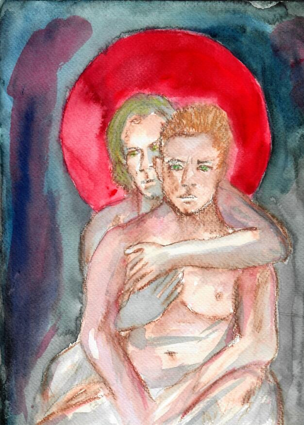 There is sadness in this picture. Sam hugs Dean, Dean accepts the hug. Sam is possessive, but he's not entirely happy either. A delicate moment with a lot of angst and love at the same time.