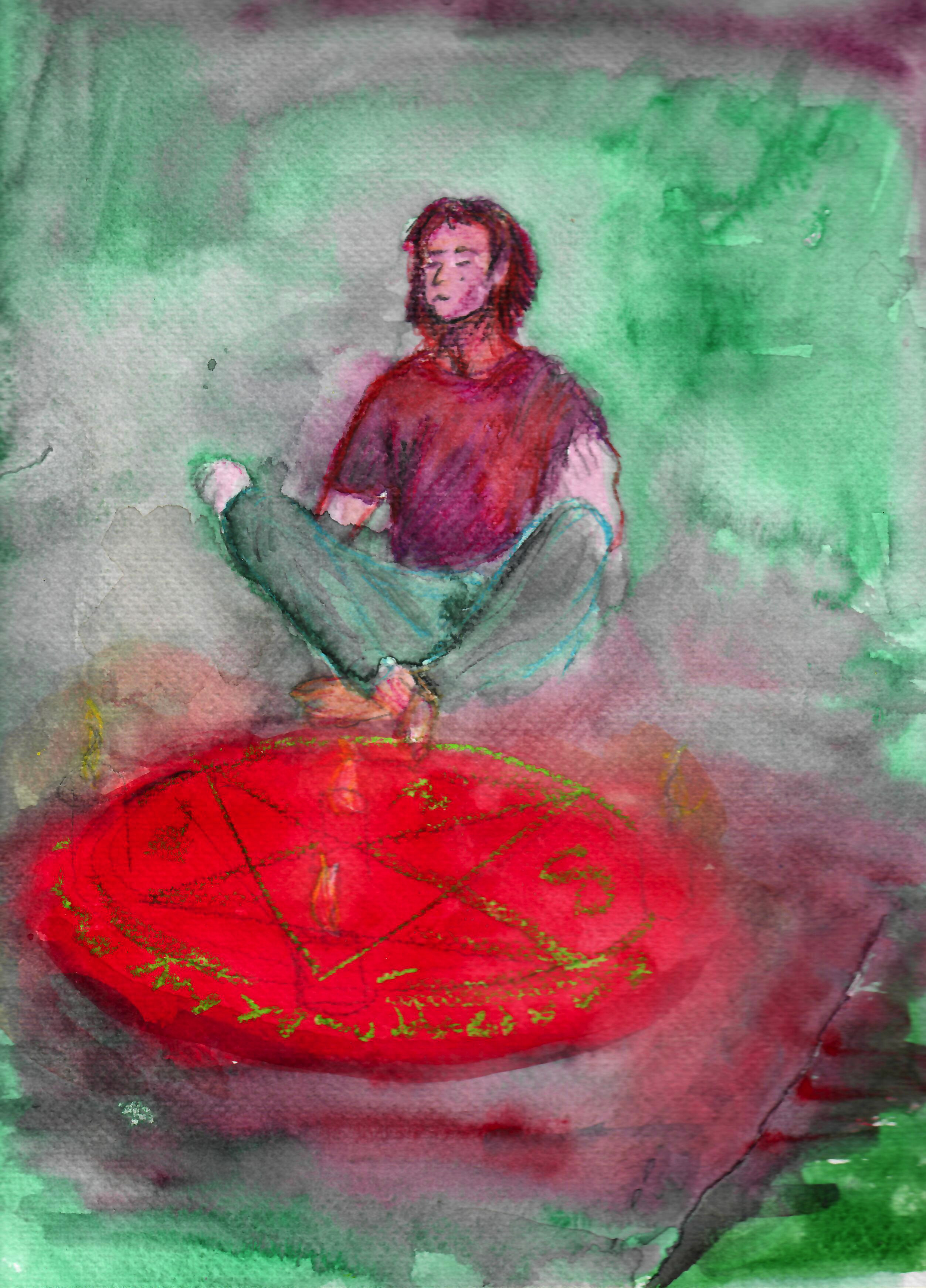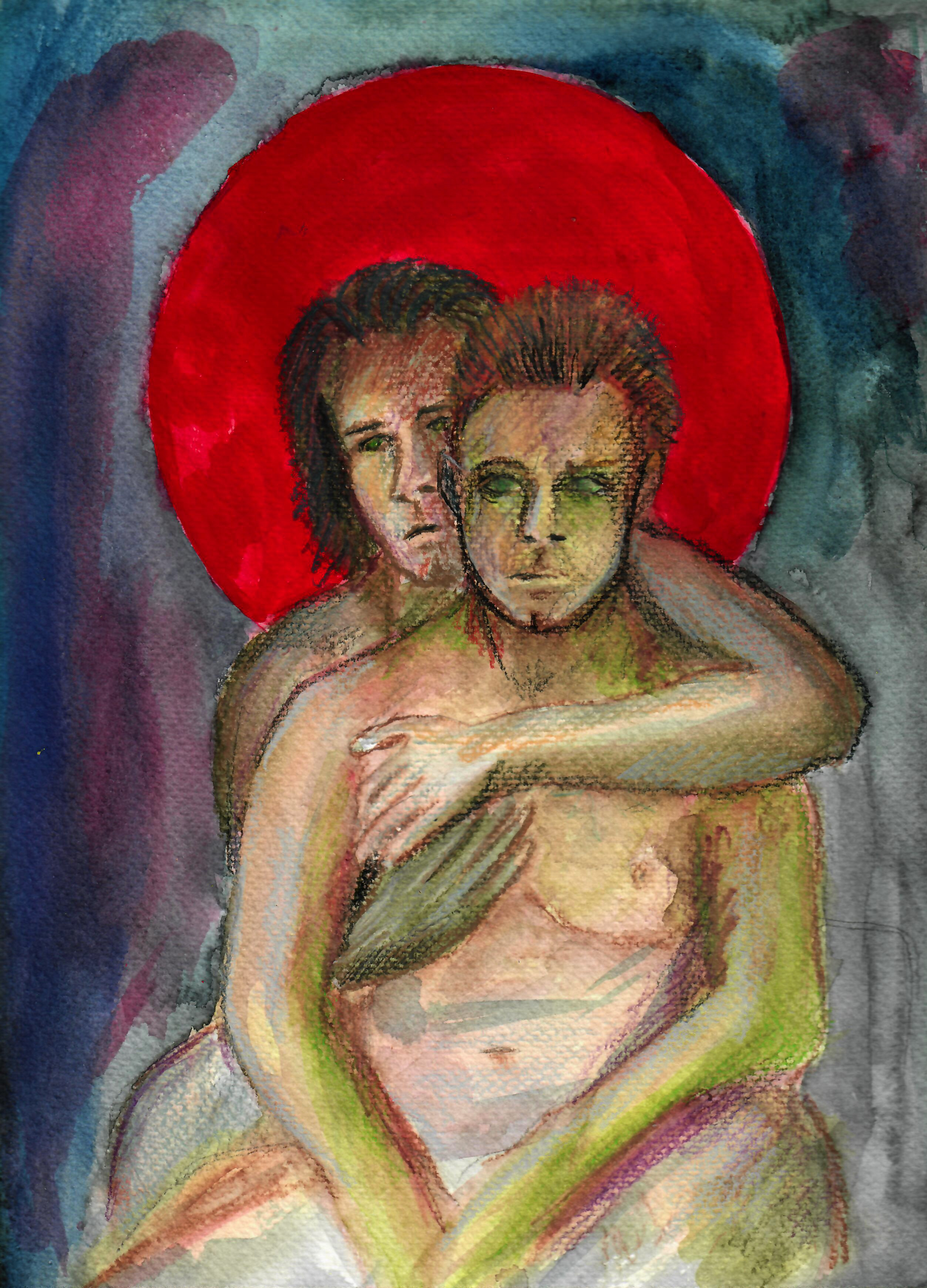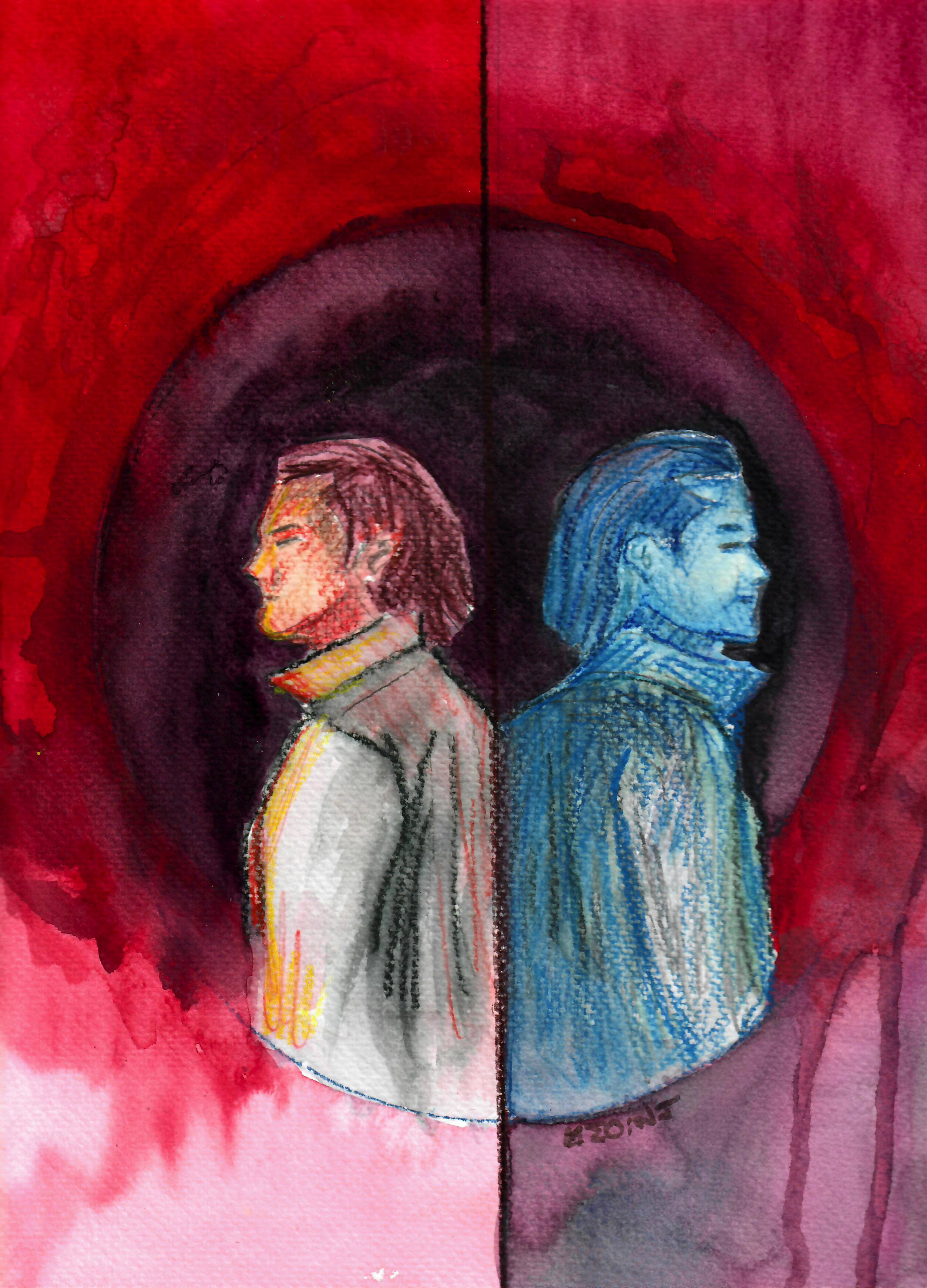 One of the strong scenes in the story that struck me is when Dean finds Sam in the bathroom trying to do magic. The red blood moon came into this picture as well in the form of a magic circle on the ground.