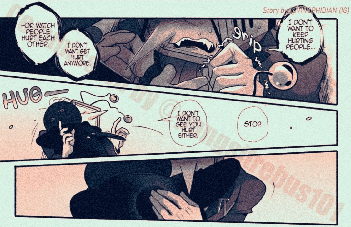 “I don’t want to keep hurting people.” He mumbled. “I don’t want get hurt anymore or watch people hurt each other.” He tugged on his antennas when Mike grabbed his hands to keep them in place.