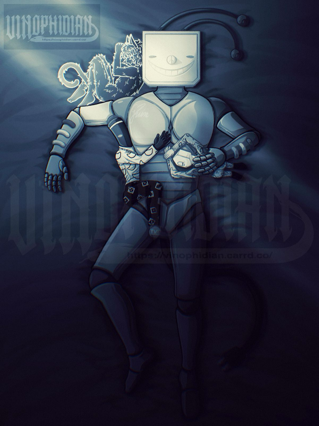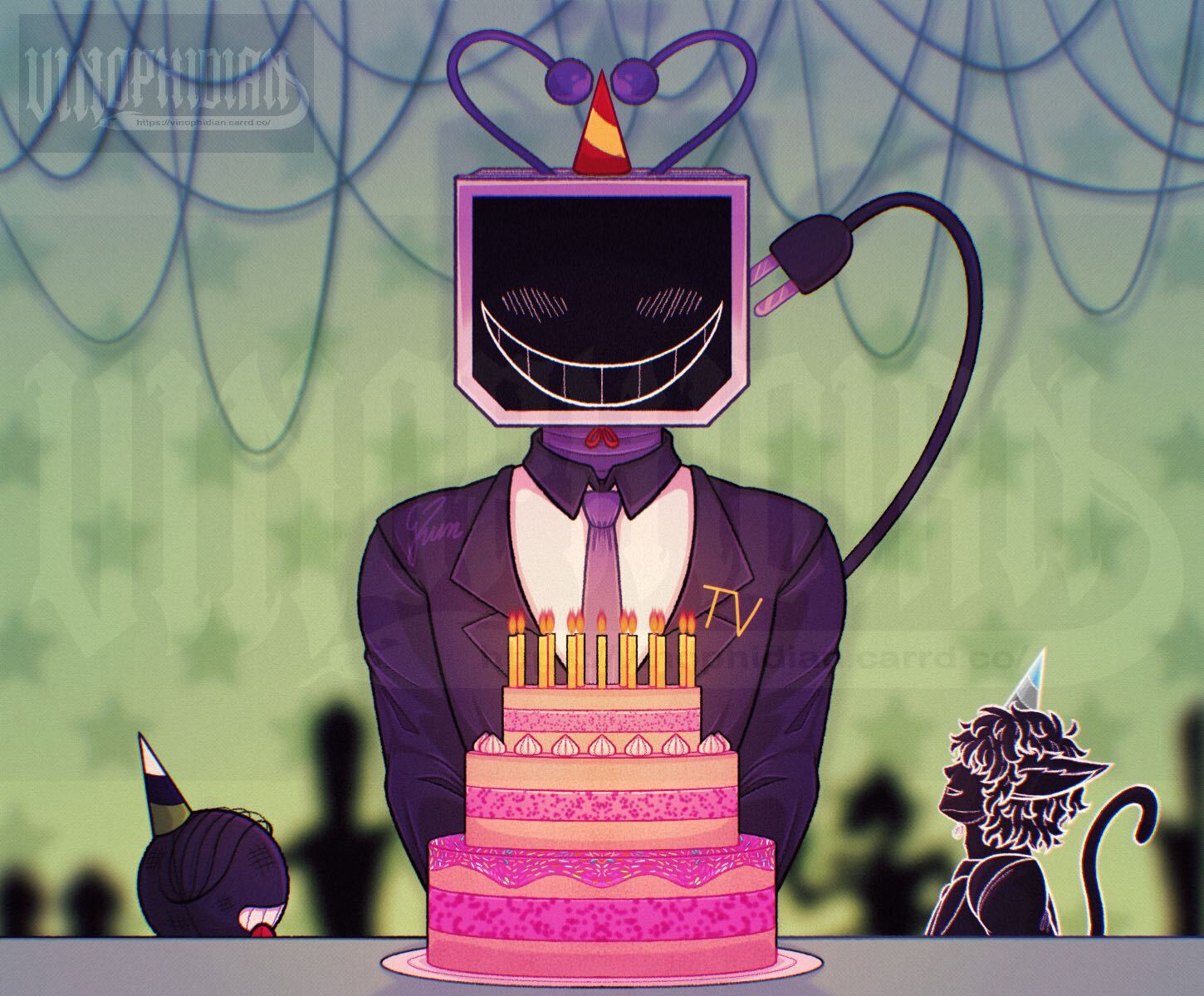 “You really are nervous.” The TV teased. “How cute…” He poked Battat’s chest with one of his claws and watched the smaller Darkner tense up. “Sorry… I can’t help myself when you look like that… Pluey told me you’re into this.” He bared his fangs.