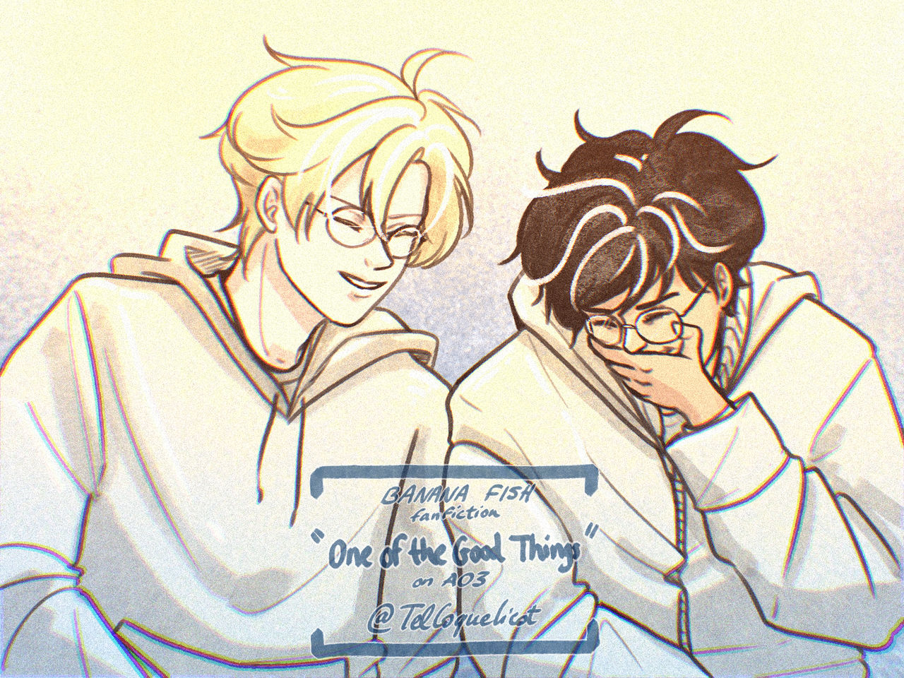 The room doesn’t seem quite so cold and blue. Eiji notices it the way he notices good light—first in how it feels on his skin, then in how it changes what he sees. A minute ago the chairs were awful, the lights unbearable, the numbers blinking nonsense an insult. Now, under this gentler glow in his chest, they’re just chairs and lights and numbers. None of them seems that bad with Ash’s shoulder pressed warm against his and his laugh ringing in his ears.