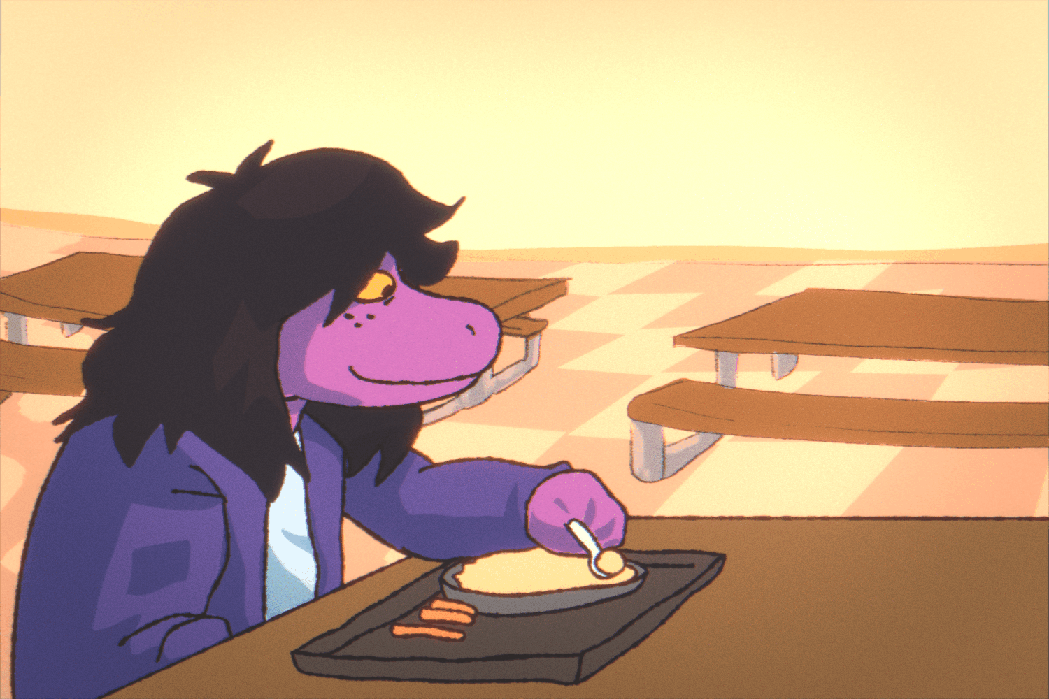 "OH, HELL YEAH! SWEET!" Susie enthusiastically replied. Without batting an eye, she swiped Kris's tray and similarly swallowed the contents of it as earlier. Kris, meanwhile, took careful consideration of her machinations. This was probably as Susie-like as she could get; maybe dragon monsters had this type of tremendous appetite, as well as ironclad stomachs. More research had to be done, of course.