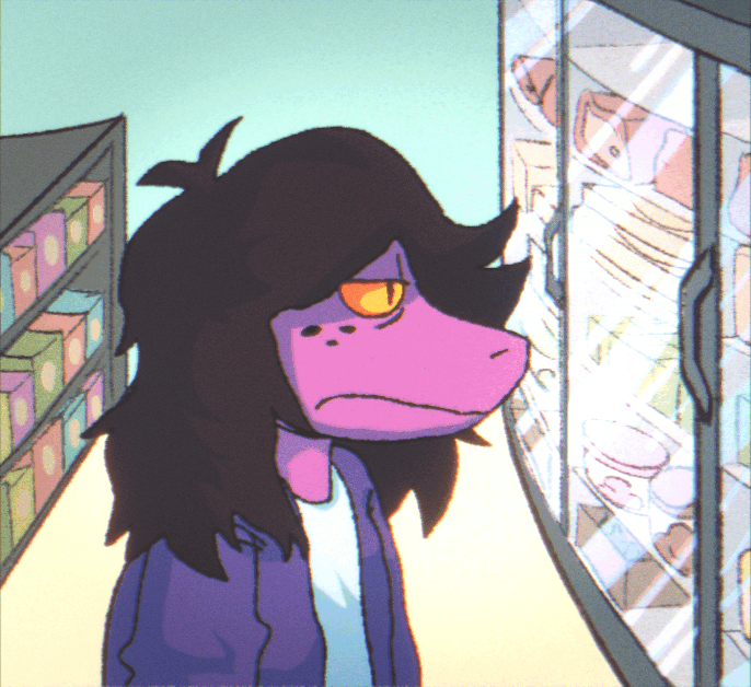 Kris then walked back to Susie, who was now looking at the frozen treats inside the refrigerators. From a distance, they could see the purple girl licking her lips in anticipation of the frozen treats before her.