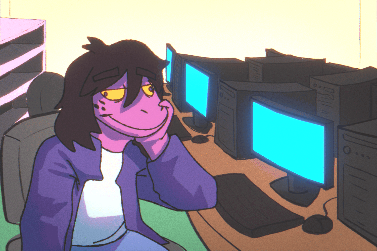 As expected, the study session was just as, if not more, boring than Alphys's class. Susie was at least expecting the computers to work so she could play some online games. But the internet was — again — down and under maintenance. She swore that Hometown was completely disconnected from the rest of the world in terms of technology. How was it possible for the internet to be down for what seemed like months in the entire town?