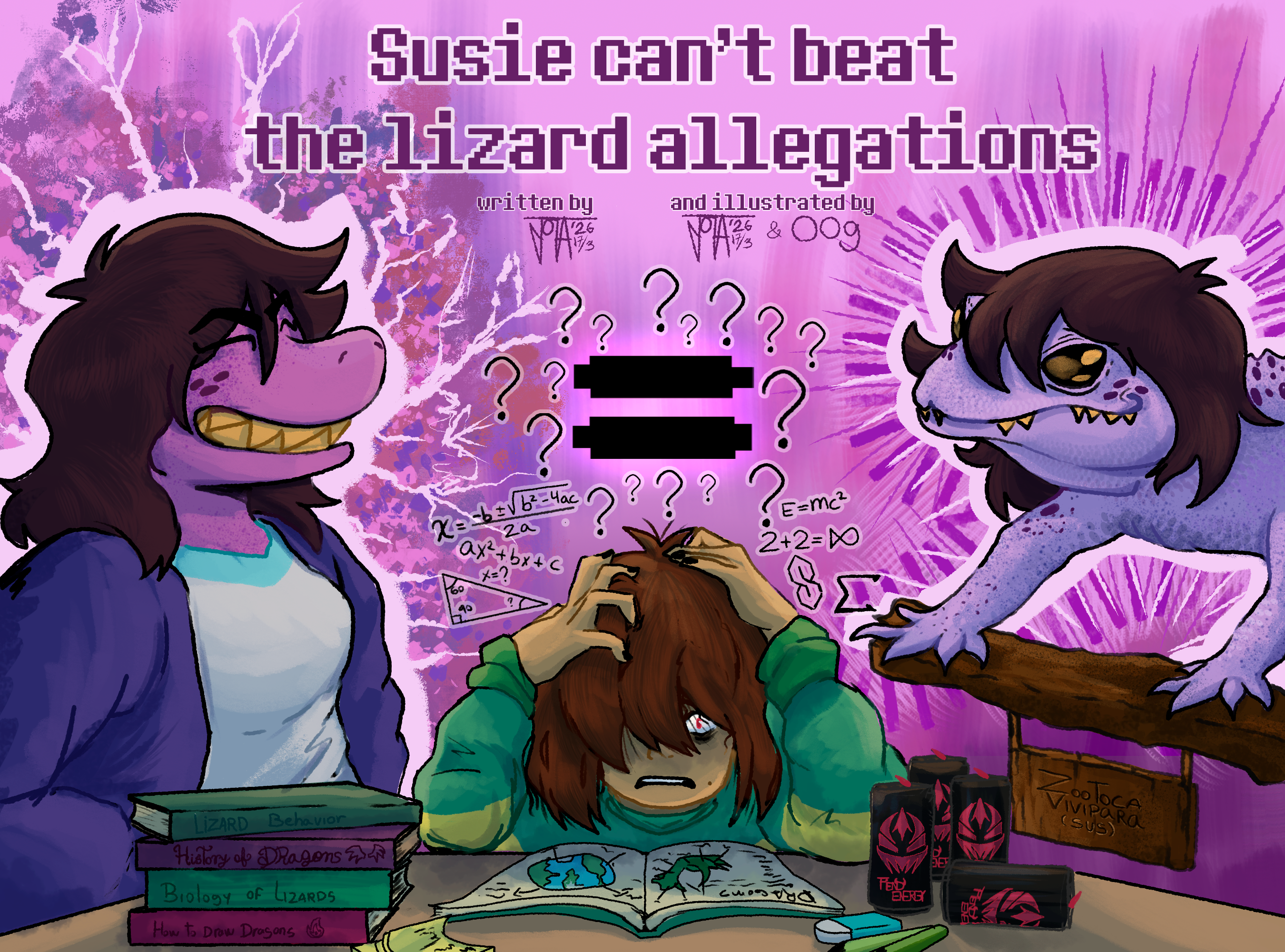 Despite that, it was also a hilarious sight to witness. The human was lucky that Susie was so completely out of it to notice them staring at her, and that Noelle and Berdly were too busy, or else they might have exploded.